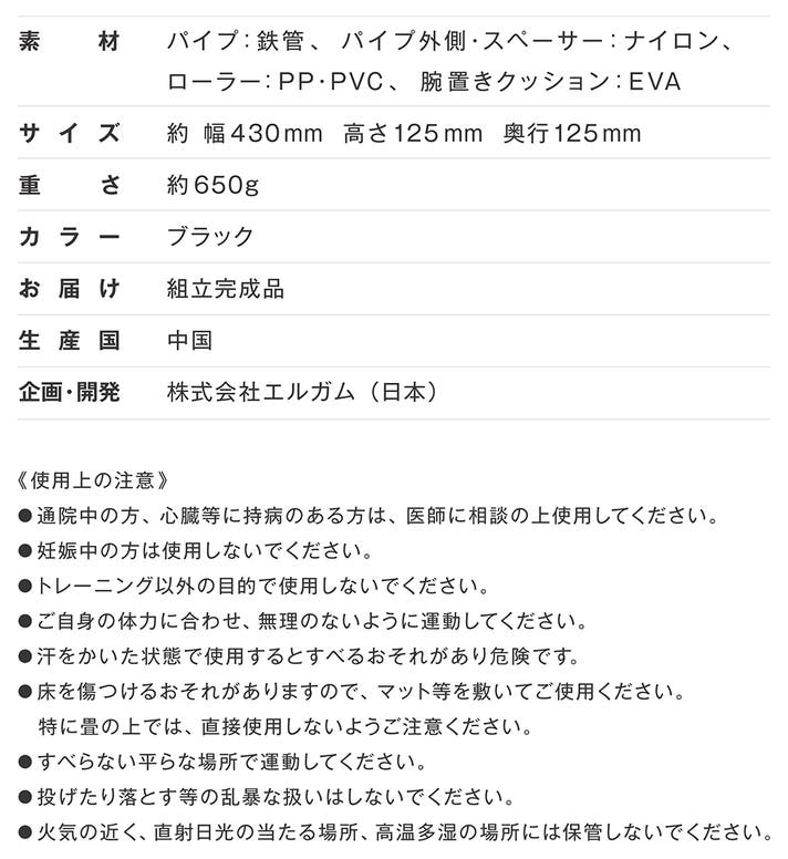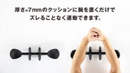 厚さ約7mmのクッションに腕を置くだけで、ズレることなく運動できます。シンプルな構造ですが、しっかり安定します。