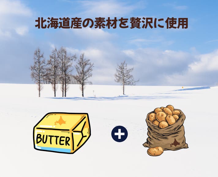 - 北海道産のじゃがいもとバターをたっぷり贅沢に使用した必勝の組み合わせ!