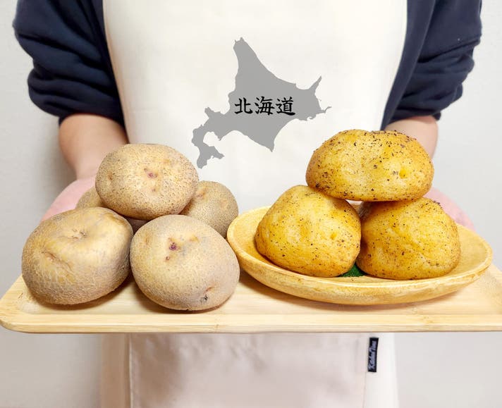 北海道産の男爵いもとバターをふんだんに使用し、見た目もまるで本物のじゃがいも。グルテンフリーで、食感は外がもちもち、中はなめらか。健康志向の方にも贈り物にもぴったりな、新しいパンです。地域の魅力を詰め込んだこの商品を、ぜひ全国の皆様に知っていただきたく、Makuakeに挑戦いたします。