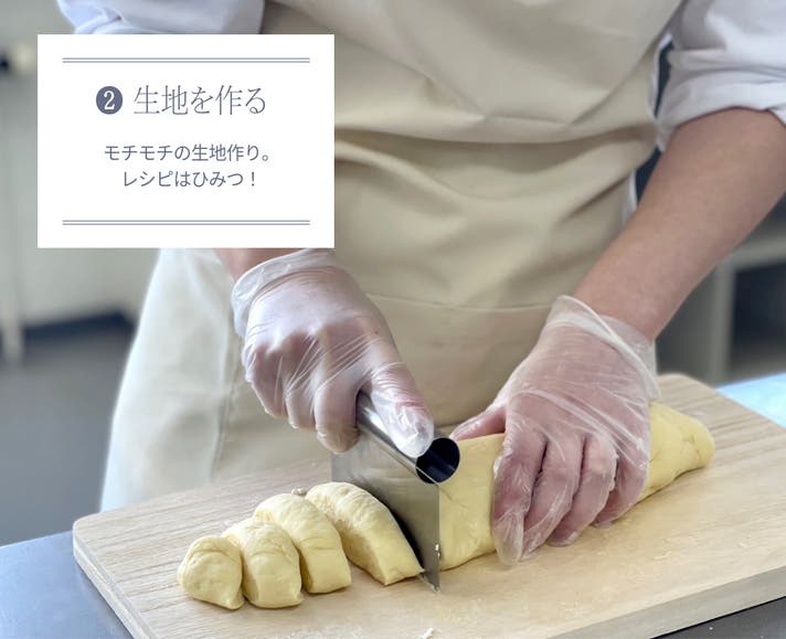 じゃがいもの形を崩さずに、膨らみすぎず、もちもち感を出せるような生地の開発に試行錯誤を重ね、小麦粉、米粉、もち粉、加工でん粉、タピオカ粉など、何度も試作を重ねた末、米粉を使用した理想の生地に到達!小麦粉では膨らんでしまい表現できなかった、じゃがいもそっくりの形も再現でき、もちもちでしかもグルテンフリーのオリジナル生地が完成しました。