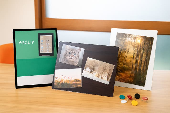 ESCLIPは横370mm×縦560mmのコンパクトサイズで、A3サイズのポスターや資料の掲示にぴったり。