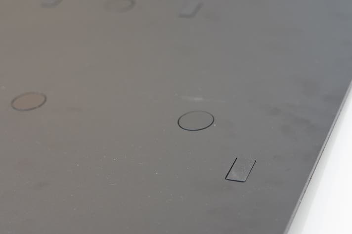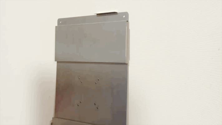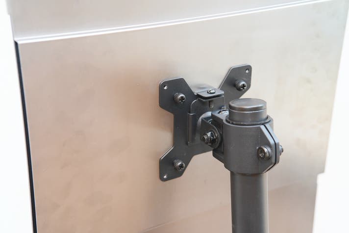 プレートの四隅にはネジ穴が空いており、壁などにしっかりと固定することも可能。また、中央部にはVESAマウント(モニタースタンドなどに使われる国際規格の取付穴)が備えられており、市販のモニターアームやスタンドにも対応。
