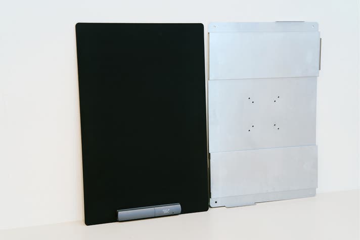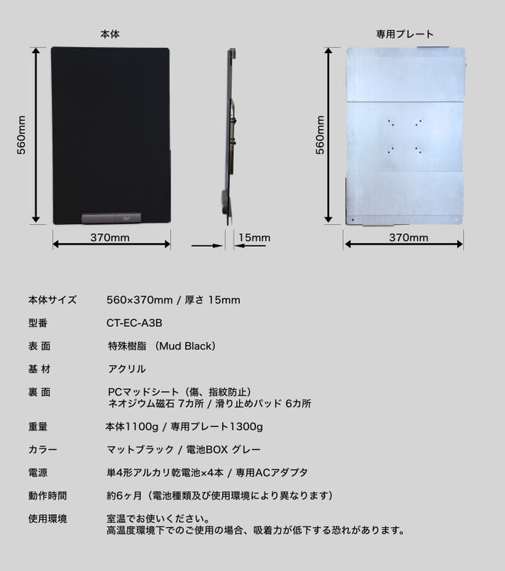 ESCLIPには、固定用の専用スチールボードが付属しています。このスチールボードは耐久性の高いステンレス製で、裏面のマグネットによりESCLIP本体をしっかりと吸着させることができます。