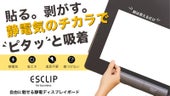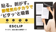 ESCLIPは、静電気で紙を貼りつけることができるので、画鋲・テープが不要で資料も壁も傷つけず、繰り返し使用可能。