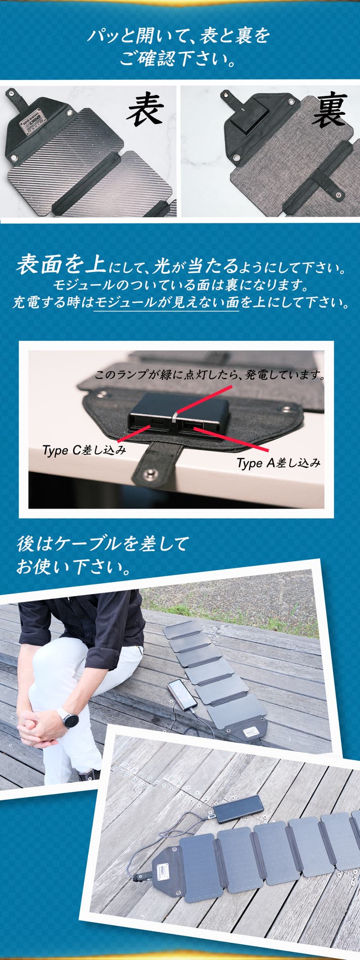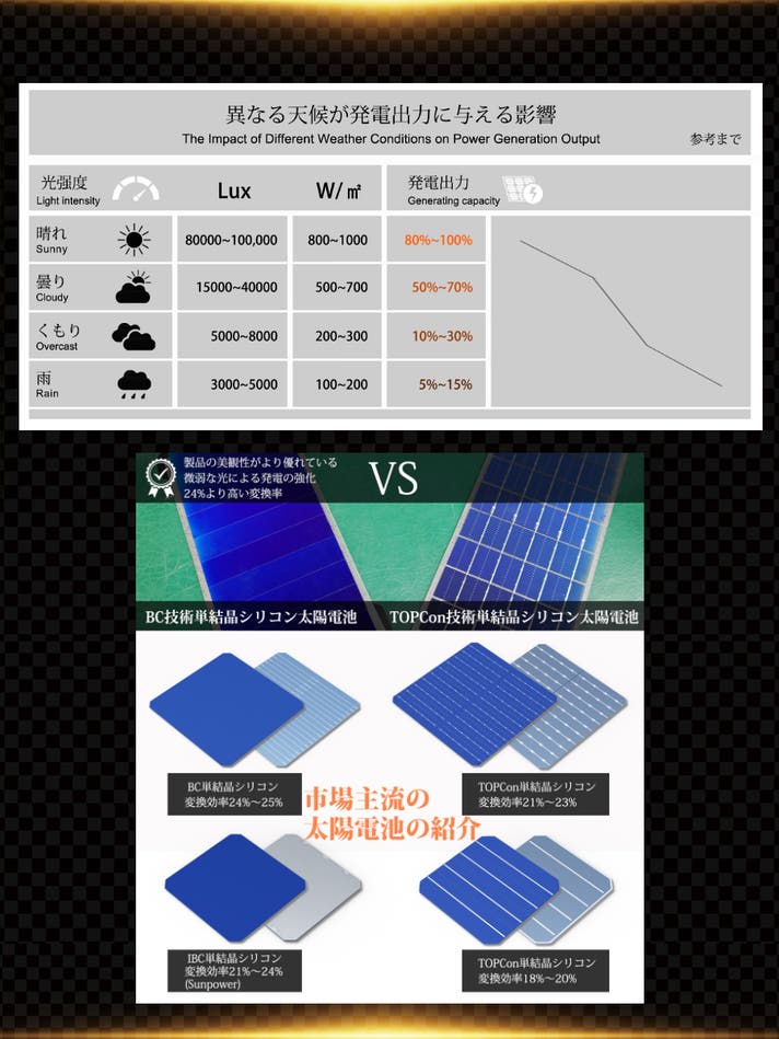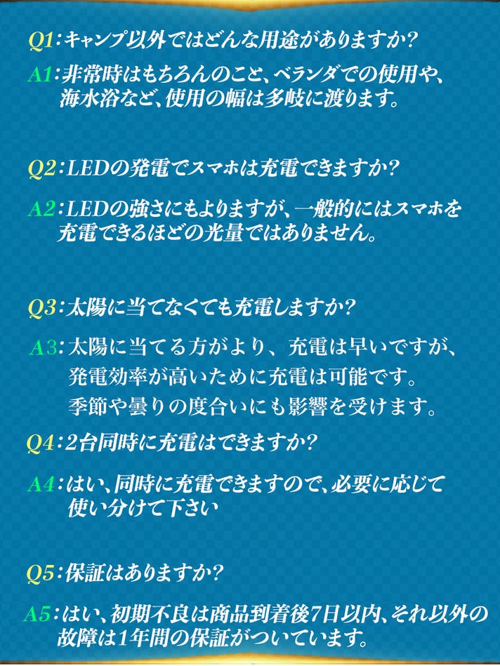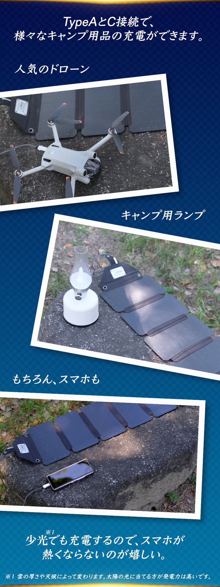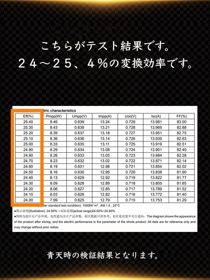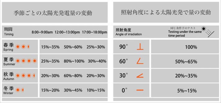 ※上記は少ない光でも発電するという証明であり、街灯や家のLEDからスマホなどが充電出来るということではありませんので、お間違えのないようにして下さい。