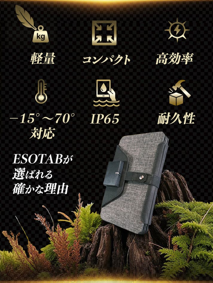 「ESOTAB」は、持続可能なアウトドアソリューションの提供に取り組んでいます。最新のテクノロジーと環境保全を組み合わせて、地球保護の同時にアウトドア体験の向上を目指してまいります。イノベーション、品質、持続可能性への取り組みは、アウトドア愛好家や環境保全意識の高い消費者から高い評価を得ています。