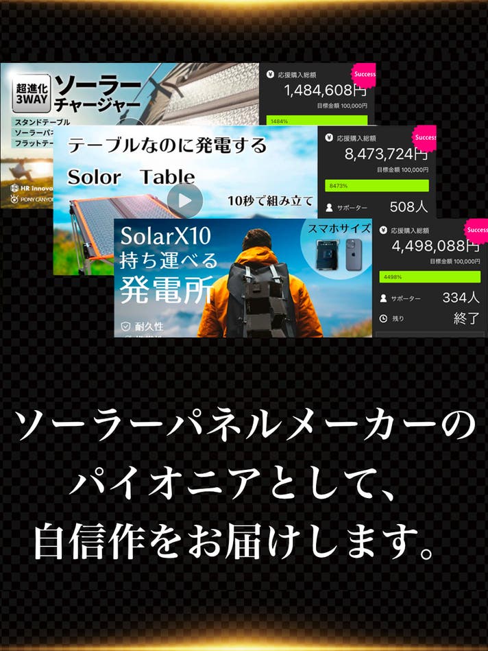 「Makuake(マクアケ)」は、実行者の想いを応援購入によって実現するアタラシイものやサービスのプラットフォームです。このページは、 プロダクトカテゴリの 「太陽を、秒で奪う。 光への食いつきが異次元な、「発電効率25%」の携帯用発電所」プロジェクト詳細ページです。