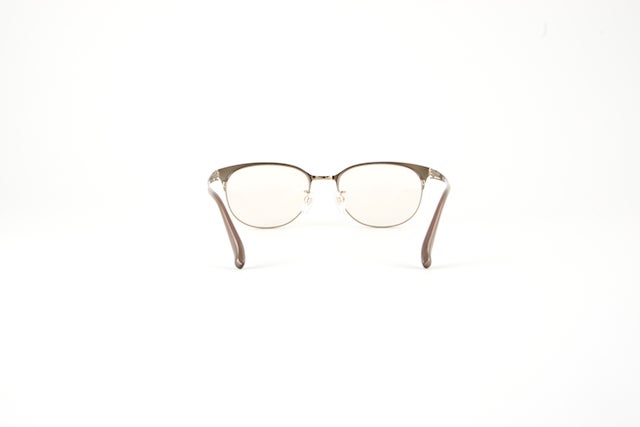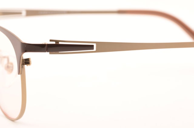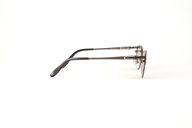 もちろん、その質感にもこだわりが。メタルフレームの質感を活かしながら、ブロータイプと呼ばれるデザインを採用。正面部分に眼鏡に古くから使われているセルロイドのような質感の表面加工を施しています。