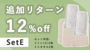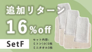4/28(日)に購入いただいた方から抽選で10名様、全期間中に購入いただいた方から抽選で10名様(合計20名様)に洗顔用のミニミトンをプレゼント(※詳細は活動レポートにて)