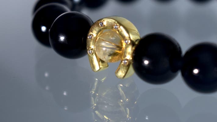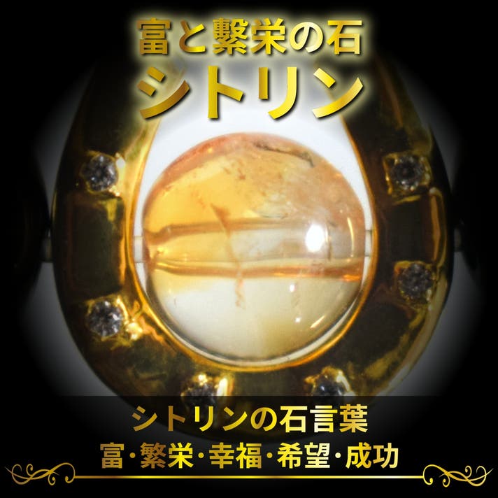 さらに馬蹄の中央には「富」「繁栄」「幸福」」「希望」「成功」の石言葉を持つシトリン(黄水晶)を配しました。