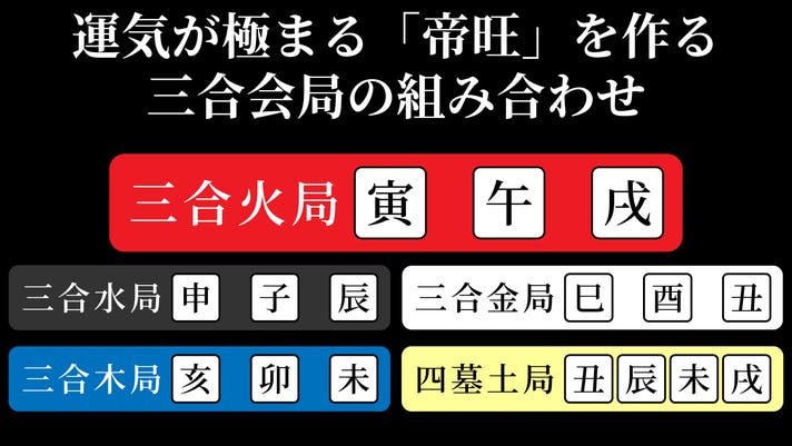 干支歴を基に人の運命を占う中国発祥の「算命学」で、相性の良い十二支の組み合わせで運気が極まる「三合会局」という秘術があります。