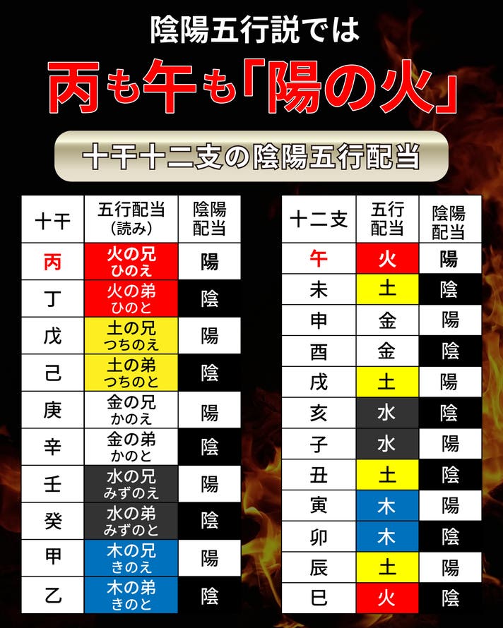 つまり「丙午」は「陽の気」と「火の気」が極めて強い年なのです。