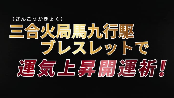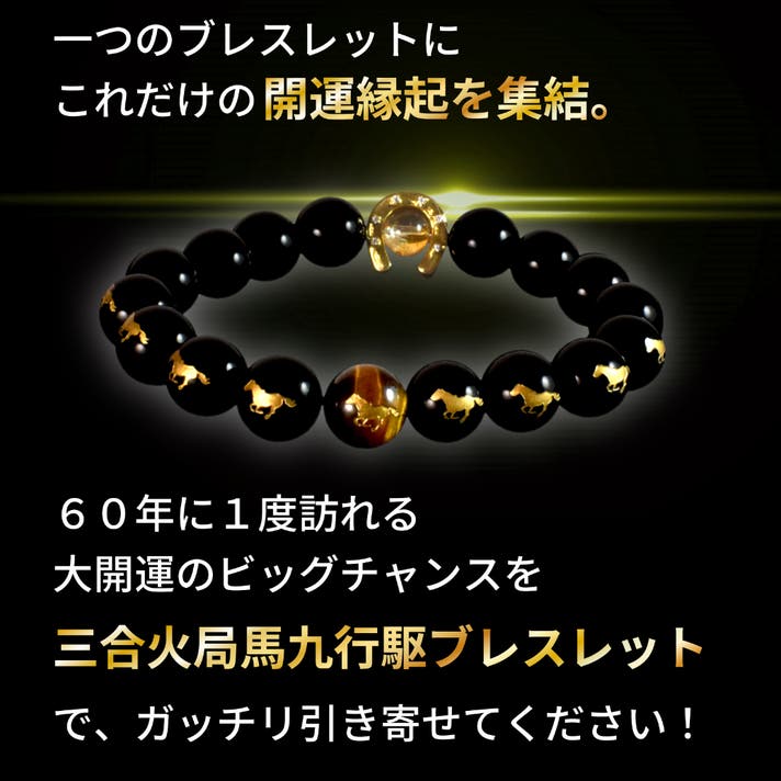 そこで「60年に一度の『丙午』の大運気を招き寄せて『万事うまくいく』ように」との願いを込めた開運アイテム『三合火局馬九行駆ブレスレット』を作り上げました!