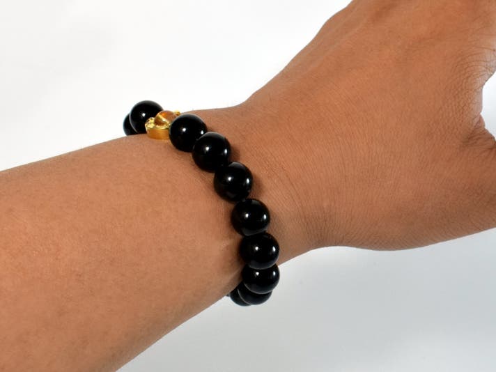 艶やかで漆黒の大玉は腕にはめると存在感が抜群。