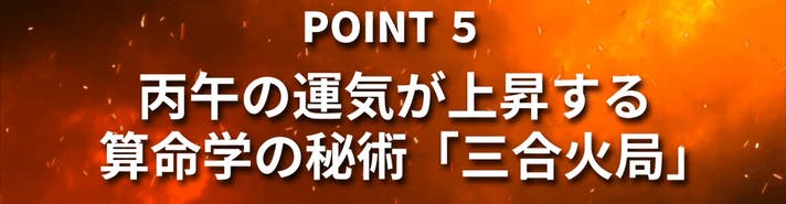 陰陽五行説では「午」は「陽の火」、「寅」は「陽の木」、「戌」は「陽の土」とされ、この3つの干支が組み合わせると五行が変化して帝旺(運気が極まること)の火局となり、運気がさらに上昇するとされます。