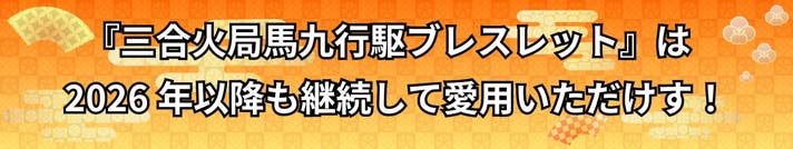 『三合火局馬九行駆ブレスレット』は2026年丙午の年回りに合わせて製作していますが、2026年終了後も継続してご愛用いただけます。