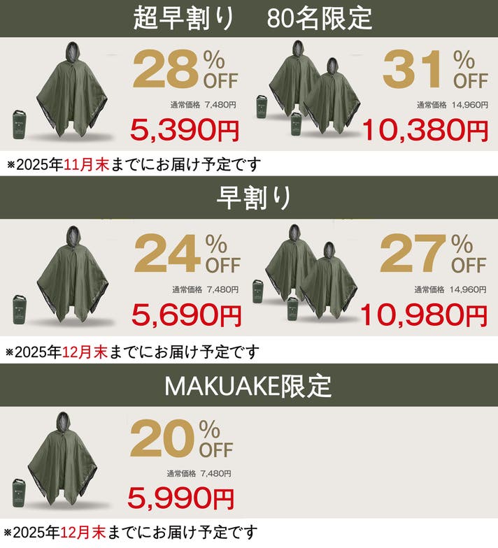 【超早割31%Off 先着80名限定】多機能レインポンチョ×2点