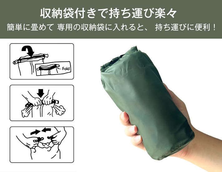 さらに、軽量でコンパクトに折りたため、付属の収納袋にすっきり収まるので持ち運びもラクラク。防水で丸洗い可能な丈夫な素材を採用し、繰り返し使えて環境にも優しい。