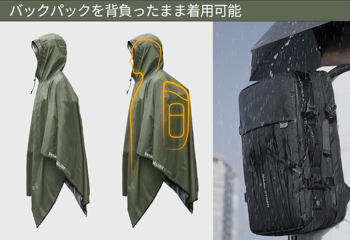 【早割27%Off 先着200名限定】多機能レインポンチョ×2点