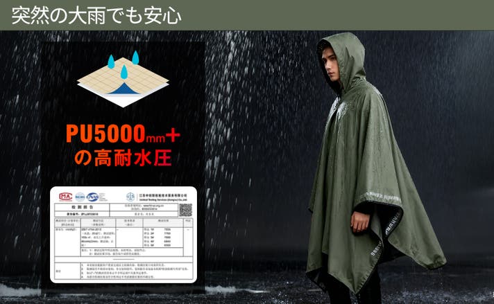 【MAKUAKE限定20%Off 先着800名限定】多機能レインポンチョ×1点