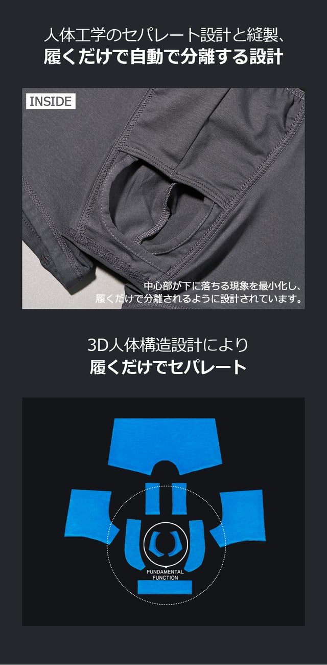 一般的なアンダーウェアを着用するのと同じように履くだけで自然に分離されます。