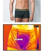 温度が高いと赤外線が赤色で感知されますが、EVAN CHRISの着用して撮影した結果、中心部の温度がはっきりと低いことが分かります。