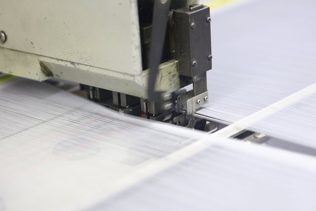 緯糸にはポリエステルの高捲縮仮撚糸を使用しており、自然なストレッチ性を持ち合わせています。通常ストレッチ性はポリウレタンという伸縮性に長けた素材を使用しますが、経年劣化してしまうというデメリットもあります。しかしポリエステルは経年劣化に強いため、優れた伸縮性がずっと続きます。