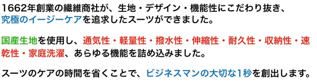 これが【1秒スーツ】たる所以です。手入れを簡単にする事で、皆さまの大切な1秒を生み出します。
