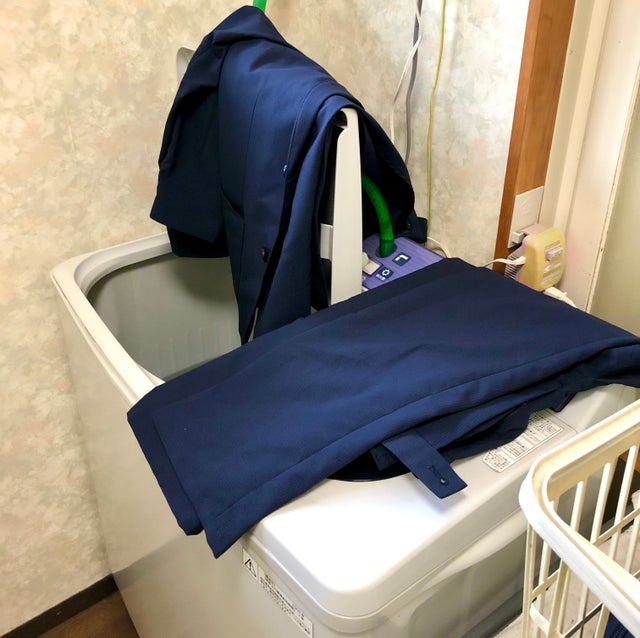 1秒スーツは究極のイージーケアを追求したため、家庭の洗濯機で洗濯していただけます。速乾性が非常に良く、およそ3時間で乾くため、夜に洗濯しても翌朝には着ることもできます。(第三者公的検査機関にて試験を実施 / 洗濯・脱水後、温度20度・湿度65%にて測定)