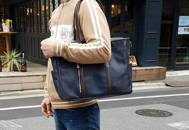 好きな鞄をいくつか持つ楽しみもありますが、1つの鞄で事足りるという便利さも使う人によってはあると思います。ビジネストートの形状で素材に「デニム」を使うことによりカジュアルダウンに成功しました。