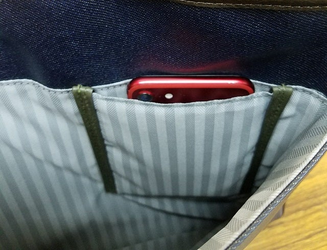 前面のアオリポケットにはスマートフォンポケットが付いています。