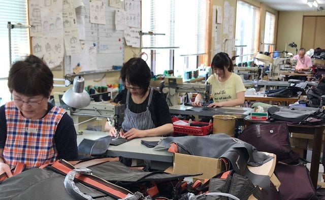 兵庫県豊岡の職人さんによって一つ一つ丁寧に作られています。豊岡はカバン生産が盛んで千年の伝統を持つカバンの産地で、奈良時代から始まる柳細工を起源としています。兵庫県鞄工組合の組合員企業で「豊岡鞄」認定の工場で製作しています。