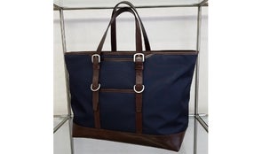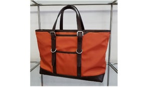 この工場ではハンドルにも工夫をしています。日本でも数少ない革磨きの機械です。これで革の角を落とし、側面を丸く仕上げることにより美しく握り易いハンドルになります(この機械の刃にはダイヤモンドが使用されています)。生地の裁断・革の裁断・縫製全て都内の工場で行われています。建物の外見は普通の民家なので見つけることは難しいのですが、実は東京にも腕の良い職人さんがいて長年の経験と確かな技術で日々鞄を作っているのです。
