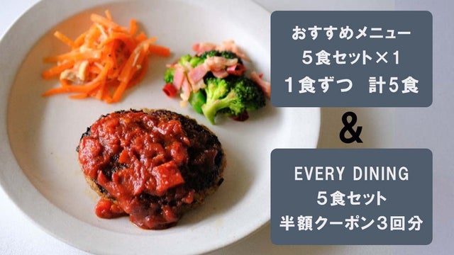 ●【1セット】人気のメニュー5品を1つずつ計5個お届け+3回分半額クーポン