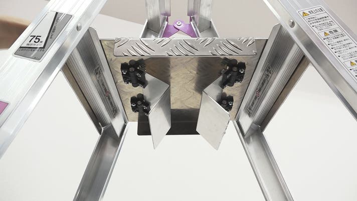 【EX-STEP】エクステップは、脚立片側のステップに装着することにより、スマートに収納することができます。