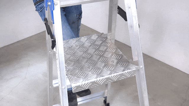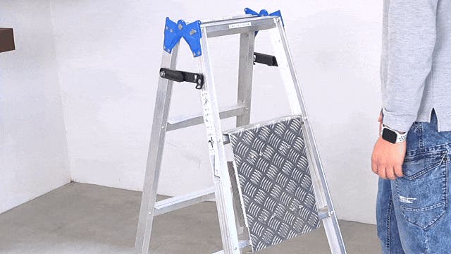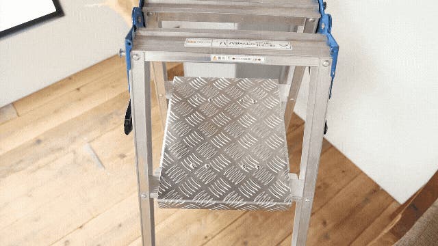 ストッパーによって落ちることがないので、脚立の折り畳み、持ち運びに支障がありません。