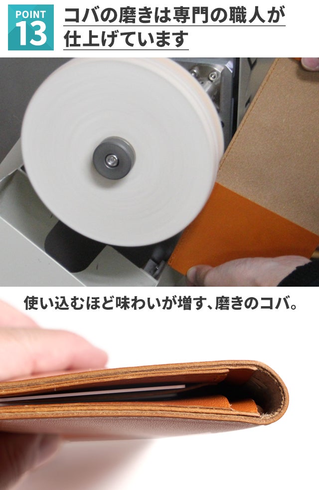手間はかかりますが、磨きのコバはコバ塗りのように剥がれてしまう心配がなく、使い込むほど味わいが増してきます。