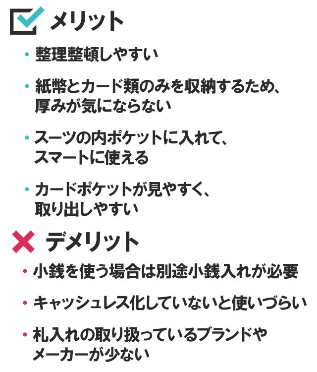 お札入れのみを使う場合、現金は紙幣しか入らないので、小銭を入れるスペースが確保できないという問題が発生します。これが、お札入れのデメリットと言えるのではないかと思います。