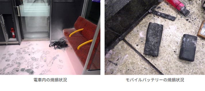 運行中の電車内でモバイルバッテリーから出火した火災
