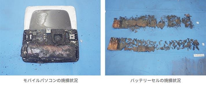 モバイルパソコンからバッテリーを取り外す際に出火した