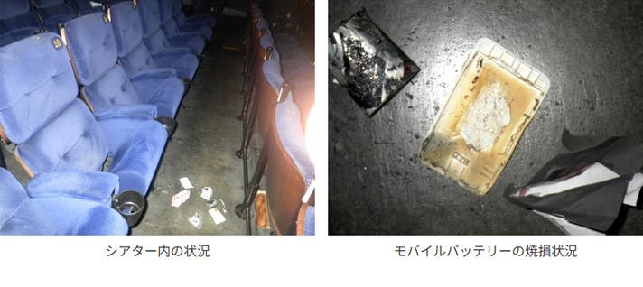 上映中の映画館でモバイルバッテリーから出火した火災