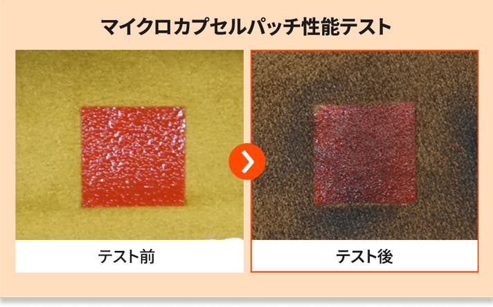 パッドの中に入っているマイクロカプセルのパウダーが噴出した後の様子(左)と噴出する前の様子(右)