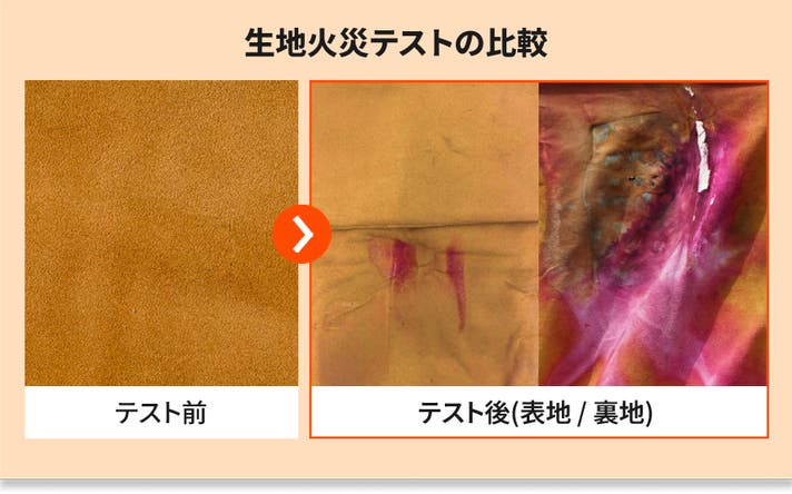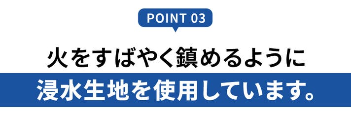 コーティングと加工を少なくし、緊急熱暴走状況時に水が素早く吸収されるように生地を加工しました。