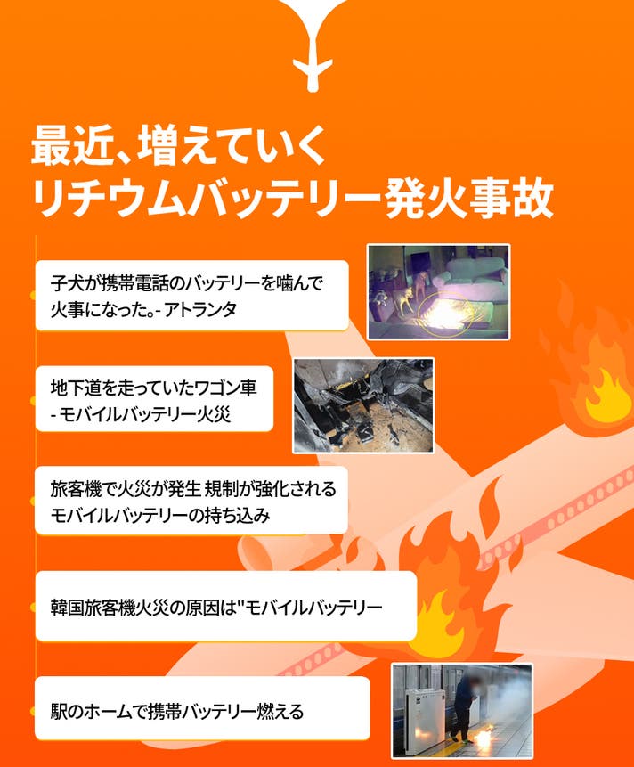 発火による人命・財産の損失、さらには公共機関の被害まで広がり、航空機搭乗時の規制も年々厳しくなっています。