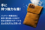 EXグリップは、モバイルバッテリーを機能性ポーチに入れて保管して使用することができ、熱暴走が発生した場合、異常兆候(煙、音)が発見されれば、直ちに安全な場所にポーチを移動させ、迅速な対策と火災鎮火で2次被害を減らしてくれる熱暴走対応用ポーチです。