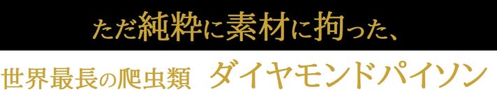 ダイヤモンドパイソンのキャタピラ(肚部)からダイヤモンドパターンへと流れる美しいグラデーション、その真の迫力を丸ごと味わい尽くすには、継ぎ目なしのセンター一枚取り以外はあり得ません。