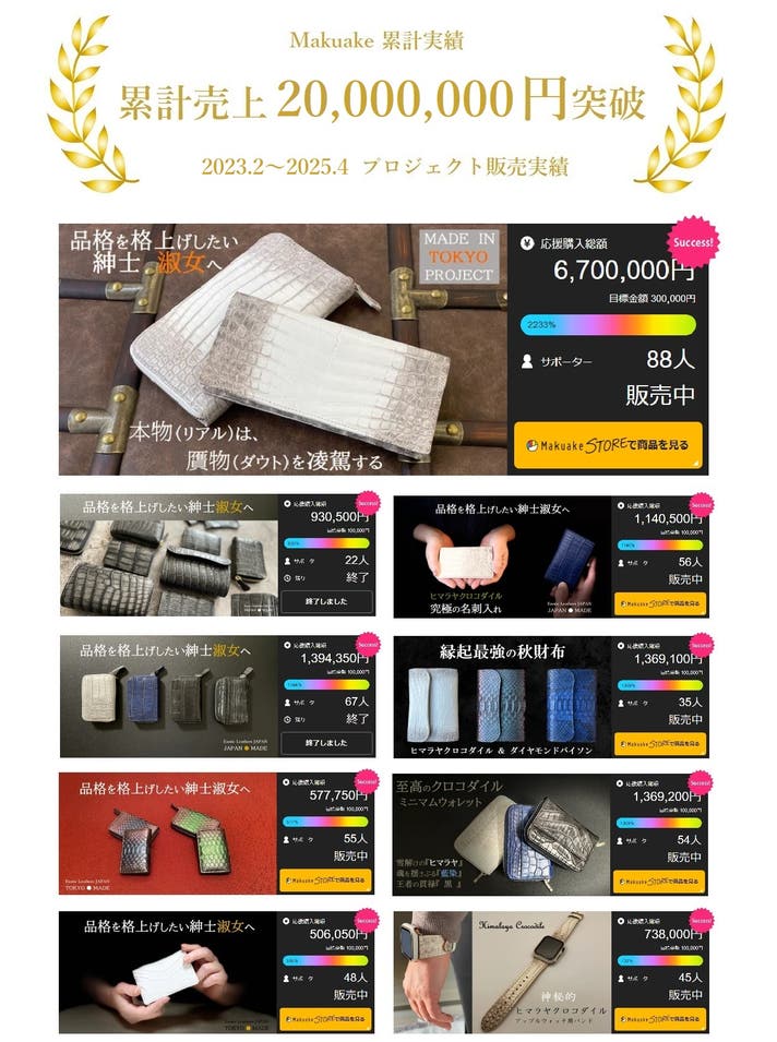 当社は、2018年から爬虫類皮革の特殊加工の卸業や製品の製造販売事業に携わっております。昨今では、エキゾチックレザーの頂点である、『クロコダイル』や『パイソン』などのプロジェクトを実施しております。