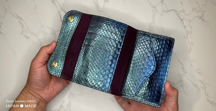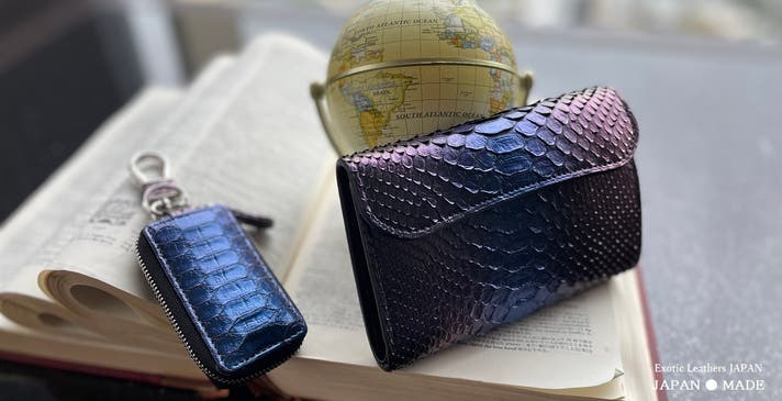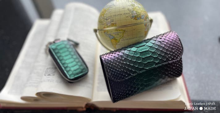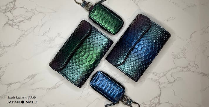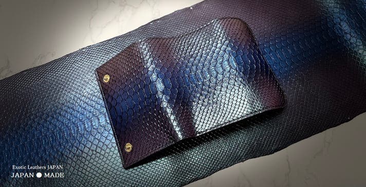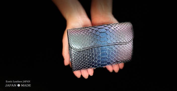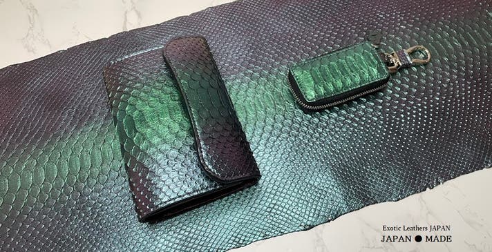 - 【見る角度によって多彩な輝きを放つ】東京革職人による特殊な分光性を実現したパイソン仕様!
