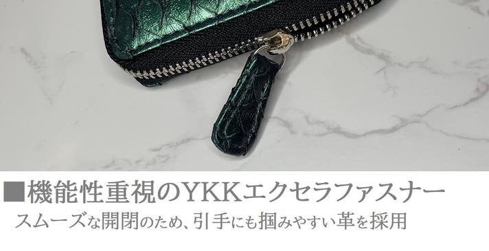 風水の世界でも、ヘビは金運アップの効果があるとされています。(下写真:ミドルウォレット 虹染グリーン)