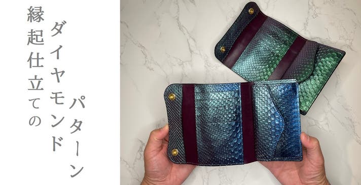 「パイソン革がもつ美しさを最大限に」お財布を開いたときにもさりげなく垣間見えるダイヤモンドパターン。使いこなさずにはいられない楽しみが味わえます。